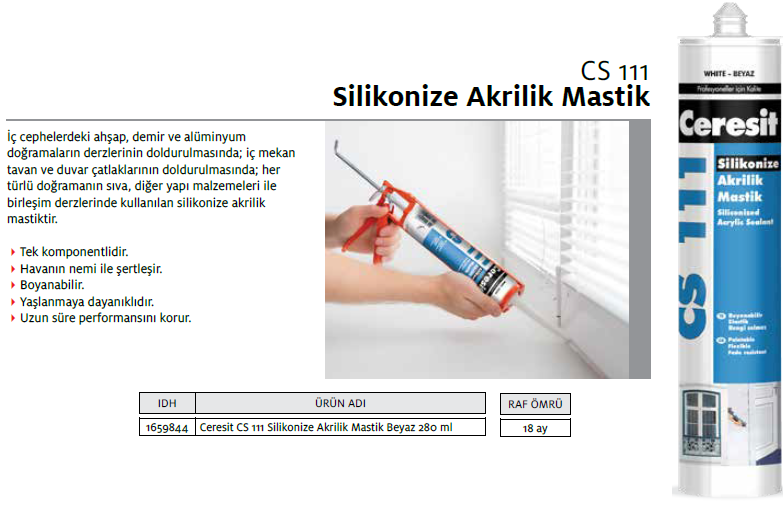 CERESİT CS 111 SİLİKONİZE AKRİLİK MASTİK BEYAZ 240ml