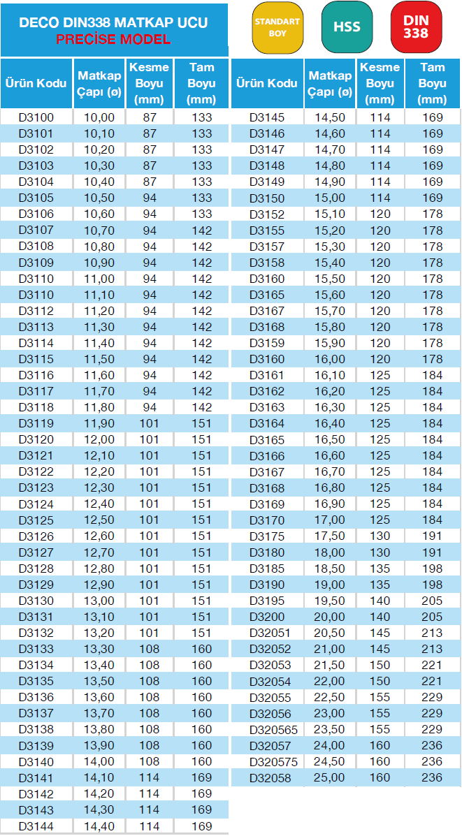 DECO 10.10mm DIN338 MATKAP UCU (PRECİSE MODEL) için henüz yorum yapılmadı. Bu ürüne ilk yorumu yapan siz olun!