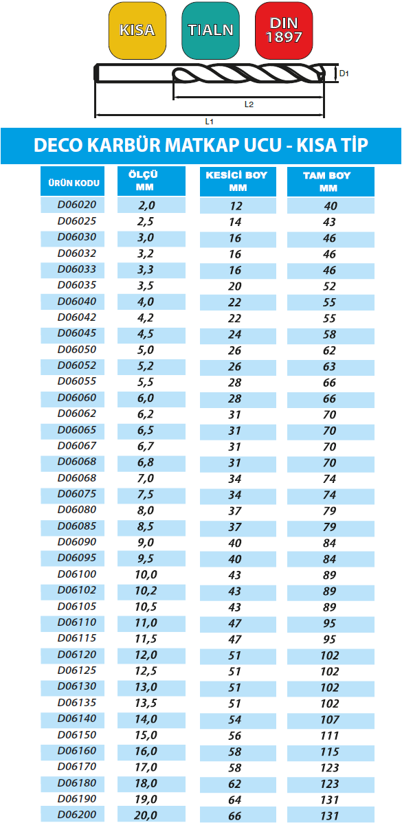 DECO 11.50mm DIN 1897 KISA BOY KARBÜR MATKAP UCU için henüz yorum yapılmadı. Bu ürüne ilk yorumu yapan siz olun!