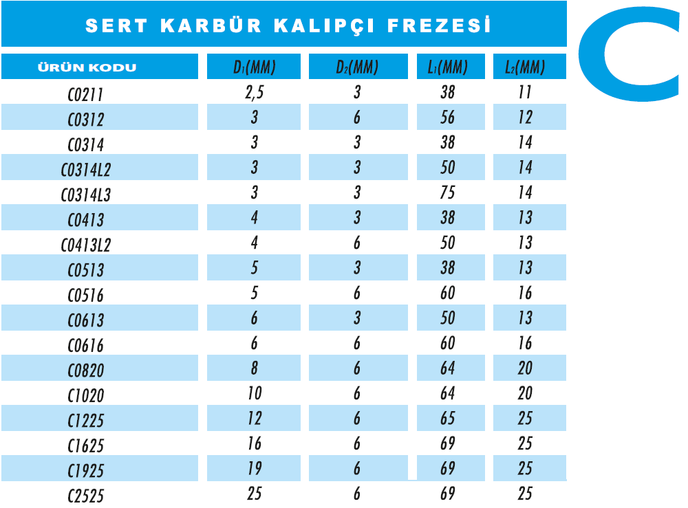 DECO 16X6X69 C FORMU SERT KARBÜR KALIPÇI FREZESİ