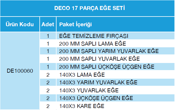 DECO 17 PARÇA EĞE SETİ için henüz yorum yapılmadı. Bu ürüne ilk yorumu yapan siz olun!