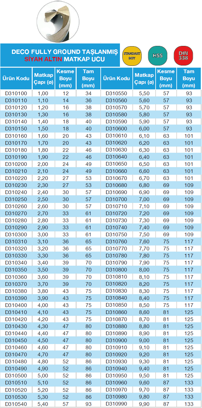 DECO 4.40mm DIN338 FULLY GROUND TAŞLANMIŞ (SİYAH ALTIN) MATKAP UCU