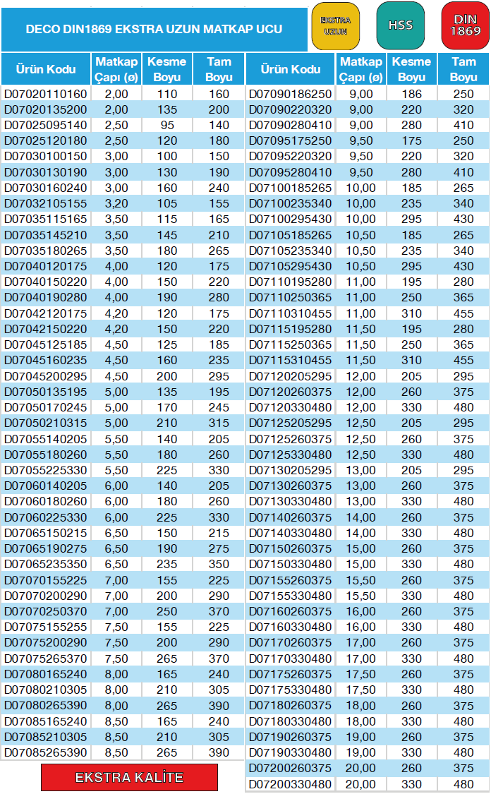 | Kategori | : Haddeli Matkap Uçları |