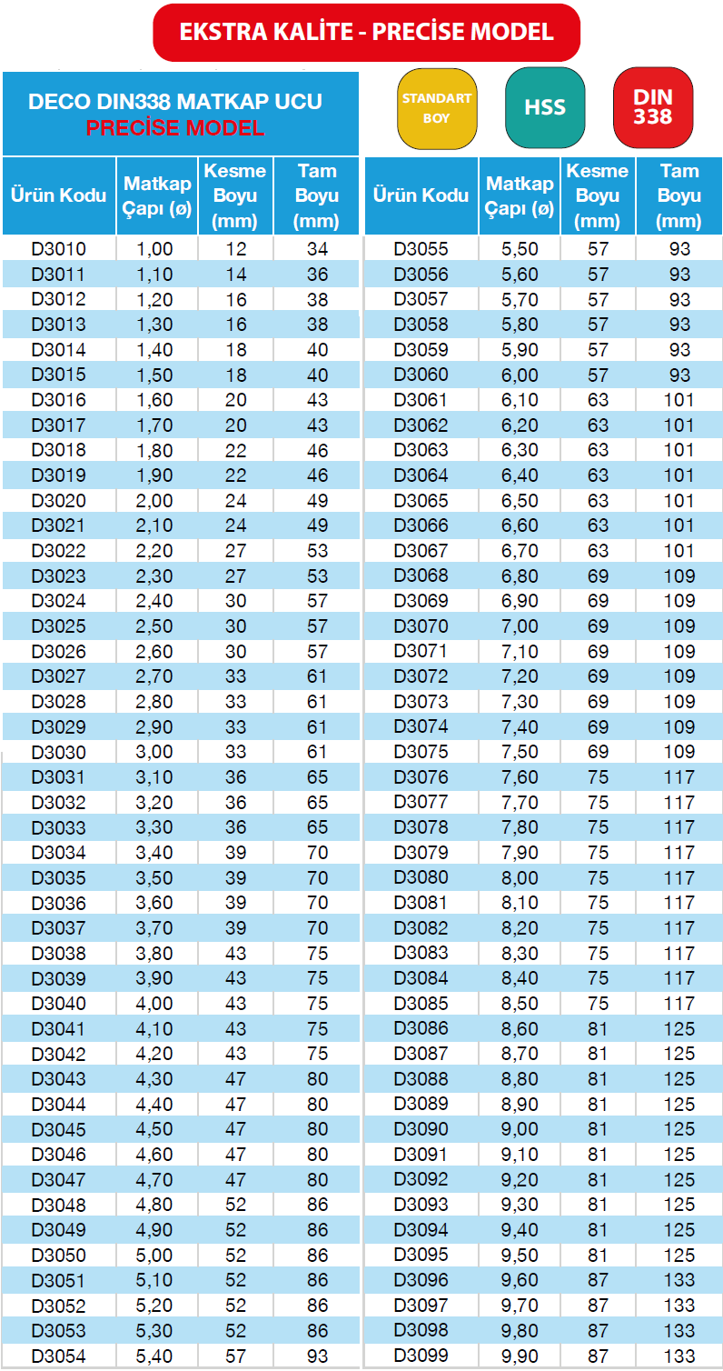 DECO 9.30mm DIN338 MATKAP UCU (PRECİSE MODEL) için henüz yorum yapılmadı. Bu ürüne ilk yorumu yapan siz olun!