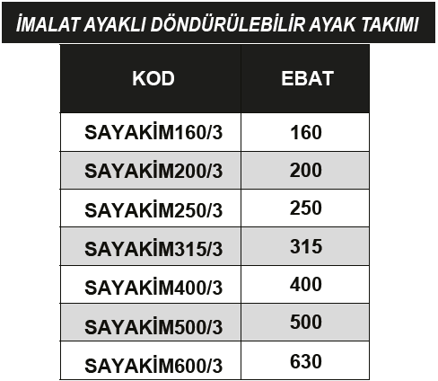 ERİC 315X3 AYAKLI İMALAT DÖNDÜRÜLEBİLİR (3 LÜ SET)