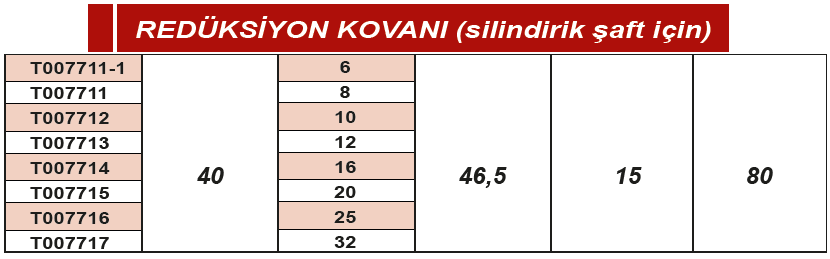 ERİC 40X46.5X20X80mm REDÜKSİYON KOVANI (SİLİNDİRİK ŞAFT)
