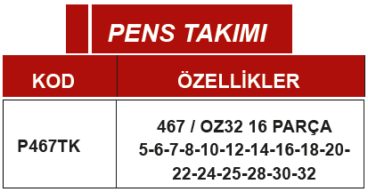 ERİC 467/OZ32 16PARÇA (5-6-7-8-10-12-14-16-18-20-22-24-25-28-30-32) PENS TAKIMI