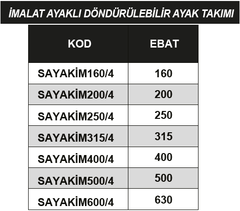 ERİC 500X4 AYAKLI İMALAT DÖNDÜRÜLEBİLİR (4 LÜ SET)