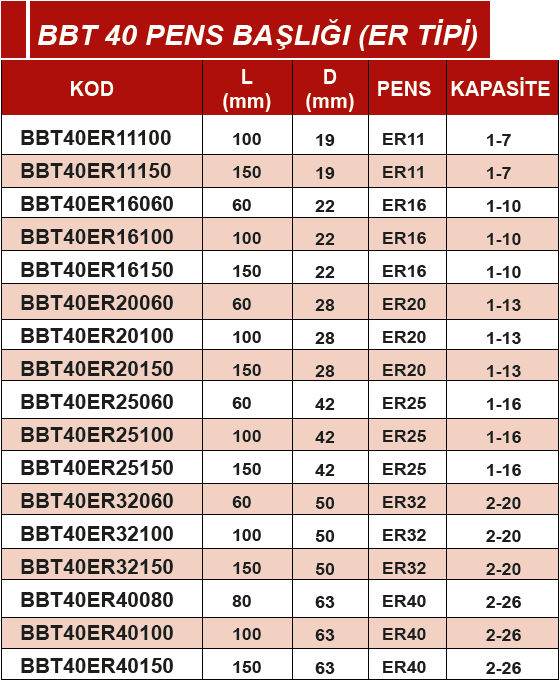 ERİC BBT 40 ER25 60X42 BBT 40 PENS BAŞLIĞI