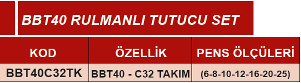 ERİC BBT40-C32 (6-8-10-12-16-20-25) RULMANLI TUTUCU SET