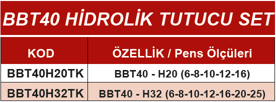 ERİC BBT40-H32 (6-8-10-12-16-20-25) HİDROLİK TUTUCU SET