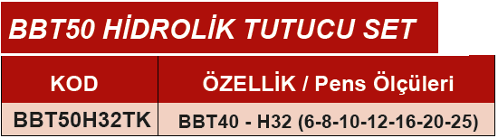 ERİC BBT40-H32 (6-8-10-12-16-20-25) HİDROLİK TUTUCU SET