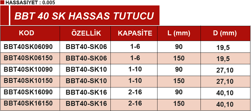 ERİC BBT40 SK-16 2-106 90X40.10 HASSAS TUTUCU