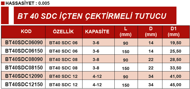 ERİC BT40 12SDC 150X34X45 İÇTEN ÇEKTİRMELİ TUTUCU için henüz yorum yapılmadı. Bu ürüne ilk yorumu yapan siz olun!