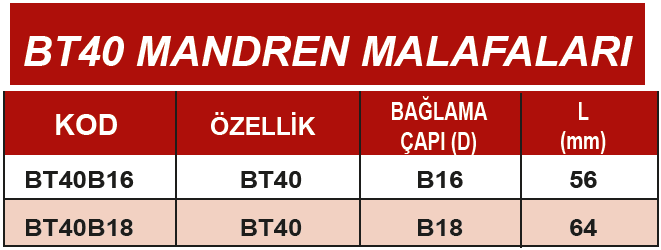 ERİC BT40 B18 64mm MANDREN MALAFALARI