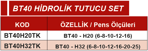 ERİC BT40-H20 (6-8-10-12-16) HİDROLİK TUTUCU SET