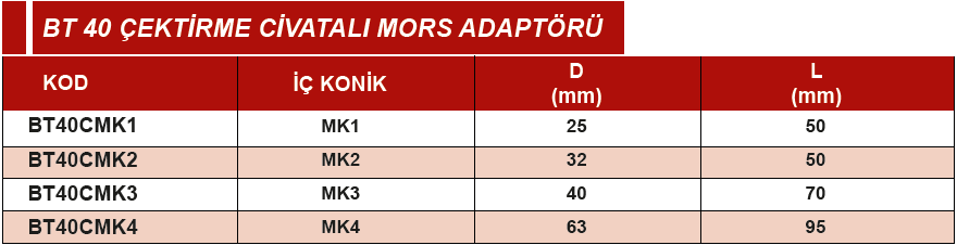 ERİC BT40 MK1 25X50 ÇEKTİRME CİVATALI MORS ADAPTÖRÜ