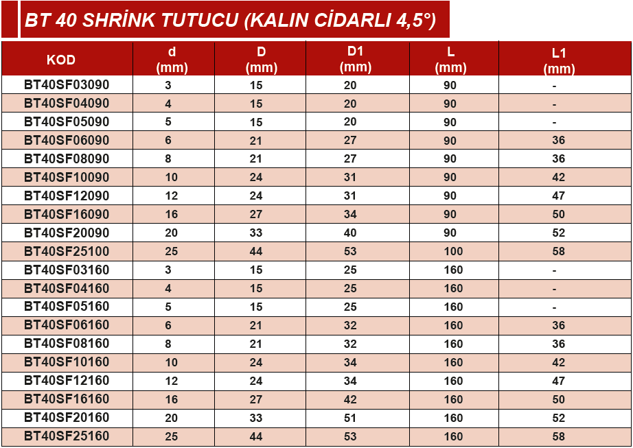 ERİC BT40 SF16 42X160 (KALIN CİDARLI 4.5°) SHRİNK TUTUCU için henüz yorum yapılmadı. Bu ürüne ilk yorumu yapan siz olun!