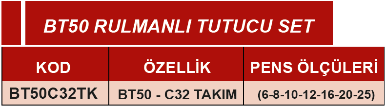 ERİC BT50-C32 (6-8-10-12-16-20-25) RULMANLI TUTUCU için henüz yorum yapılmadı. Bu ürüne ilk yorumu yapan siz olun!