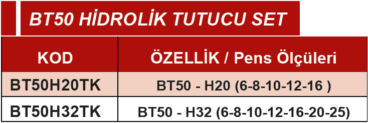 ERİC BT50-H32 (6-8-10-12-16-20-25) HİDROLİK TUTUCU SET