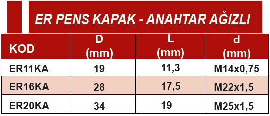 ERİC ER PENS 19X11.3XM14x0.75 ANAHTAR AĞIZLI KAPAK