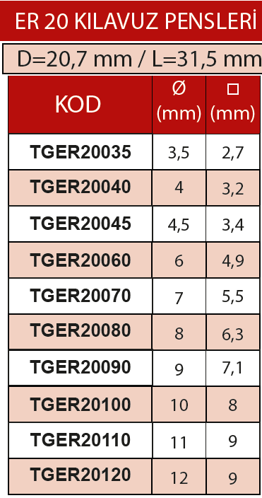 ERİC ER20 Ø7X5,5mm KILAVUZ PENSİ