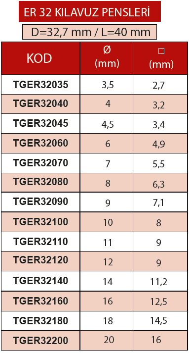 ERİC ER32 Ø7X5,5mm KILAVUZ PENSİ
