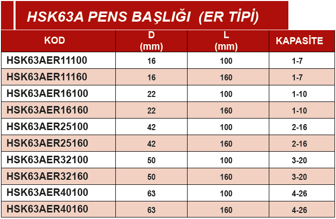 ERİC HSK63A 42X160X2-16 PENS BAŞLIĞI (ER TİPİ)