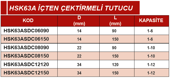 ERİC HSK63A SK 34X120 1-12 İÇTEN ÇEKTİRMELİ TUTUCU
