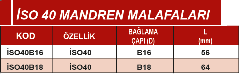 ERİC İSO40 B18 64mm MANDREN BAŞLIKLARI