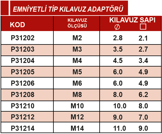 ERİC M10 EMNİYETLİ TİP KLAVUZ ADAPTÖRÜ