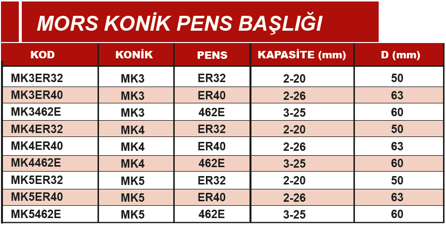 ERİC MK4 ER40 2-26 63mm MORS KONİK PENS BAŞLIĞI