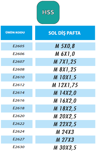 ERT M22X2.5 SOL DİŞ PAFTA