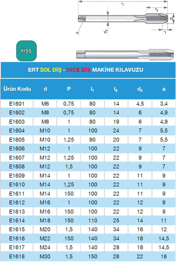 ERT M6x0.75 (SOL DİŞ) (İNCE DİŞ)-DÜZ MAKİNA KLAVUZU