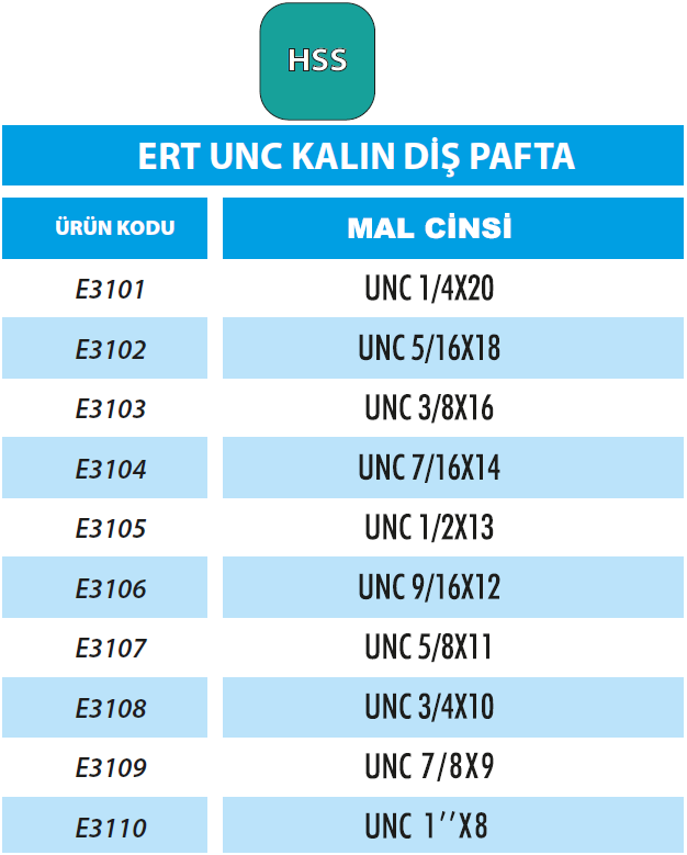 ERT UNC 1/4X20 KALIN DİŞ PAFTA