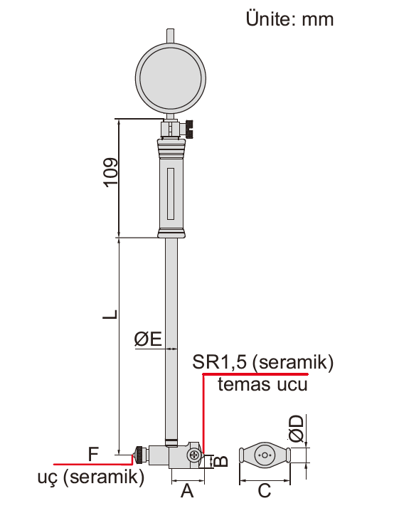 | 2322-35A | 18-35mm | saatli komparatör aralık 10mm hassasiyet 0,01mm (kod 2308-10FA) | ±0,015mm | 0,003mm |